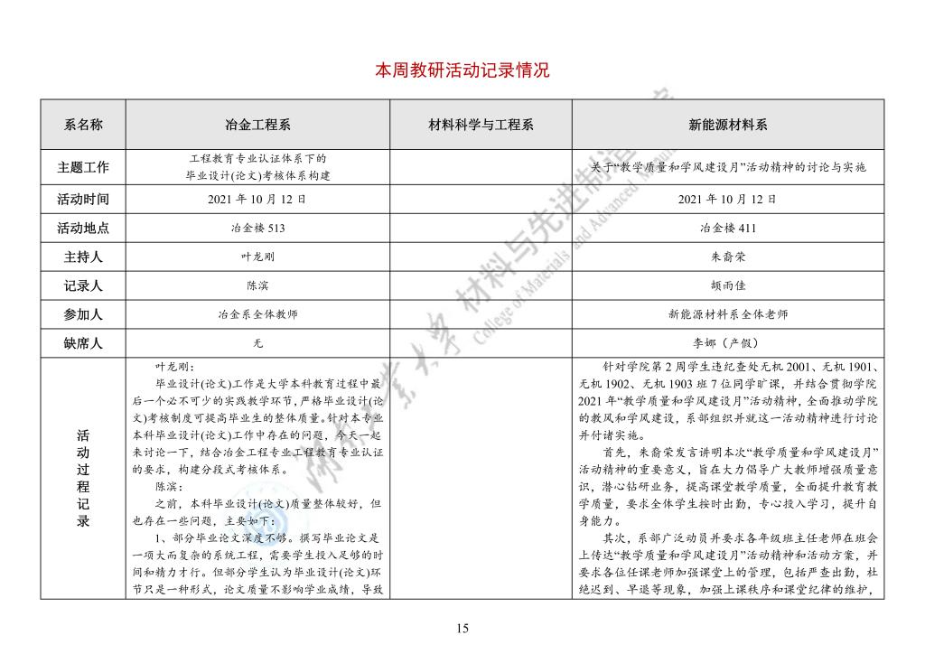 材料与先进制造学院教学工作周报--第4期